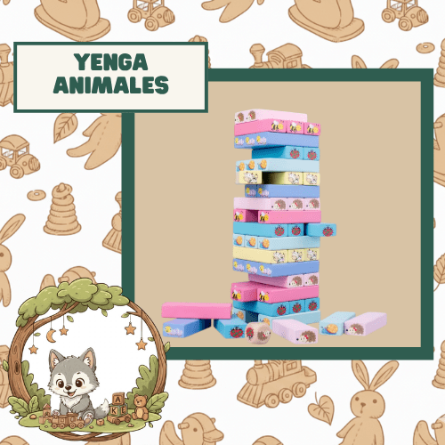 Este juego de mesa está especialmente diseñado para los más peques de la casa por su atractivo diseño de animales y en colores que les llamará la atención para jugar y compartir. Incluye 51 piezas de madera con impresión de caras de animales, 24 tarjetas, 2 dados y 2 martillos de madera.