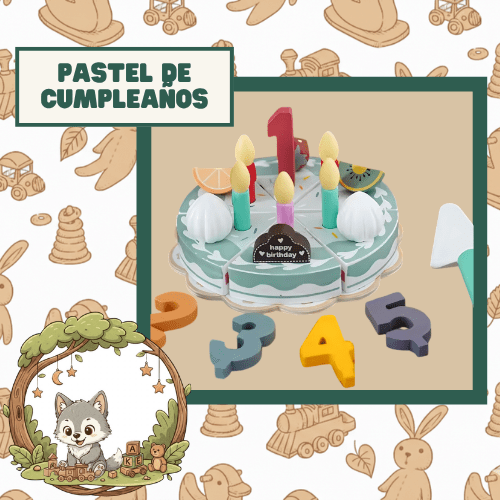 Este encantador set de pastel de madera está diseñado para que los más pequeños de la casa se conviertan en los mejores anfitriones. Es un material didáctico ideal para fomentar la interacción social y la motricidad fina de manera divertida y natural.